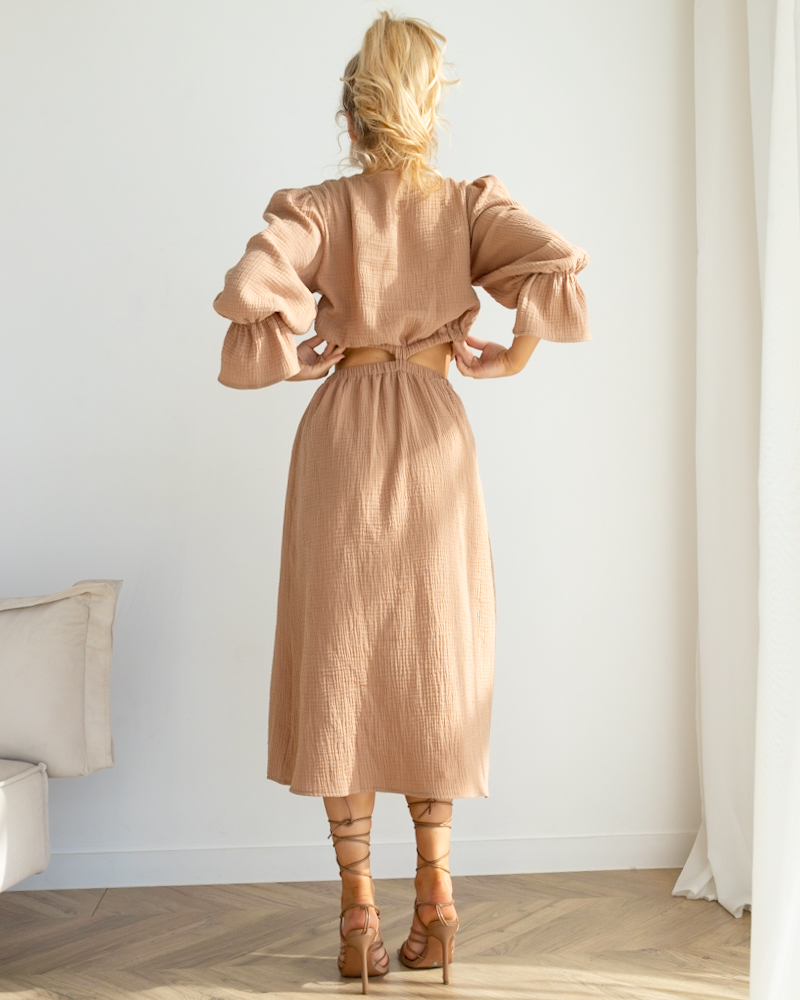 Невагомий комплект-сукня із тканини муслін, яка така легка та невідчутна на тілі. Чудово пропускає повітря та дуже приємна на дотик.