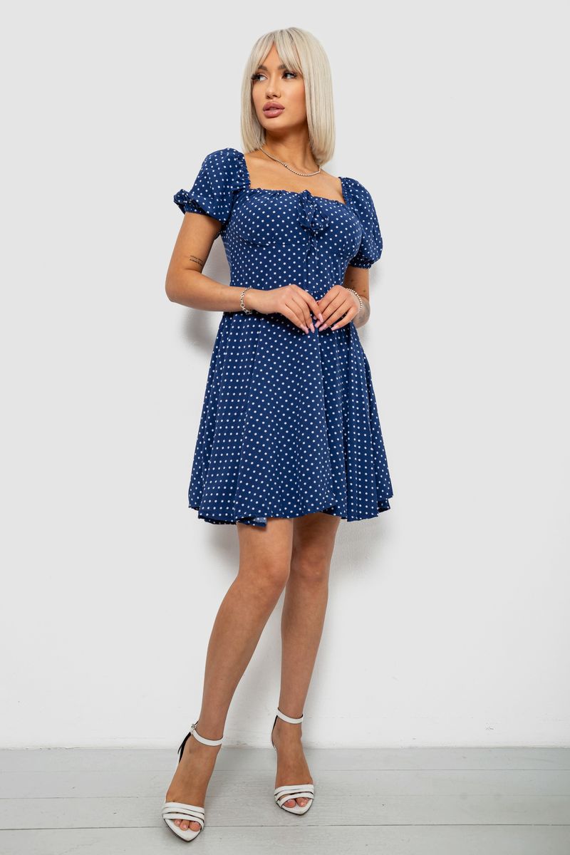 Сукня жіноча в горошок софт, колір синій, 257R811-1 : Колір - Синій, Розмір - L (арт. 257R811-1)