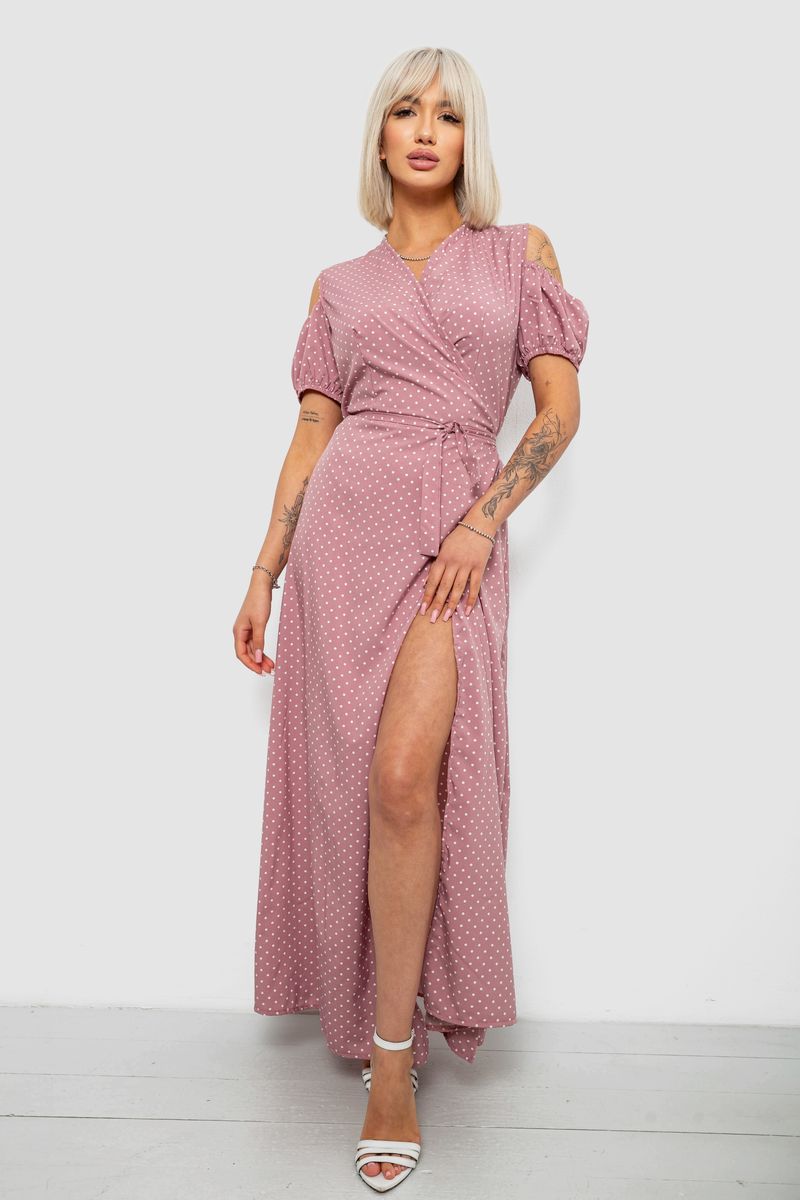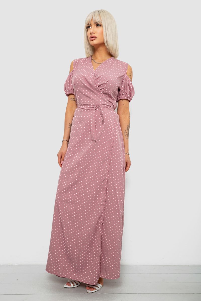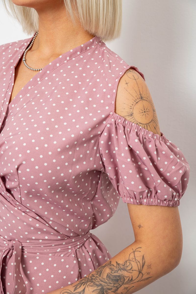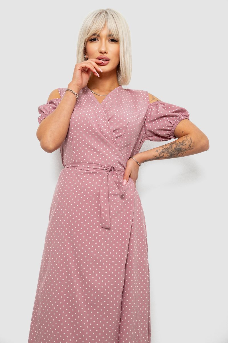Сукня жіноча на запах у горошок софт, колір пудровий, 257R358-3