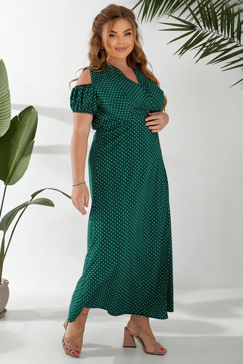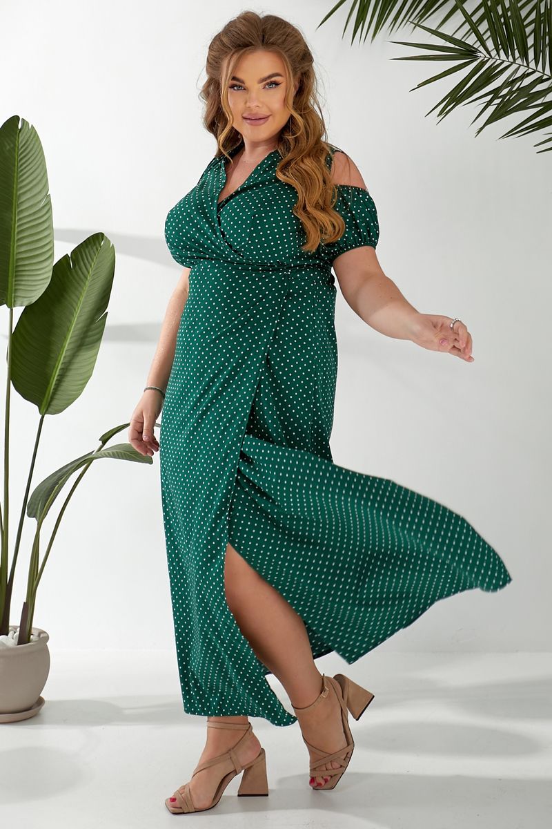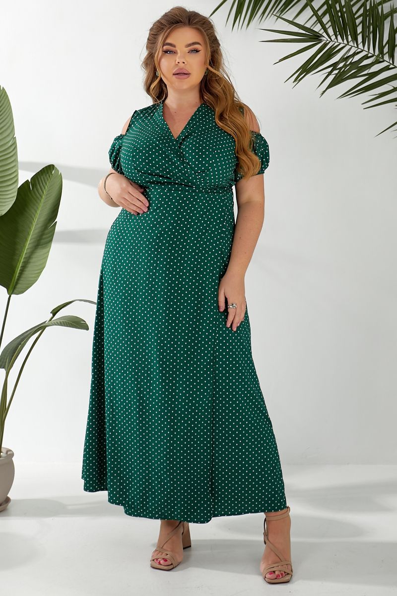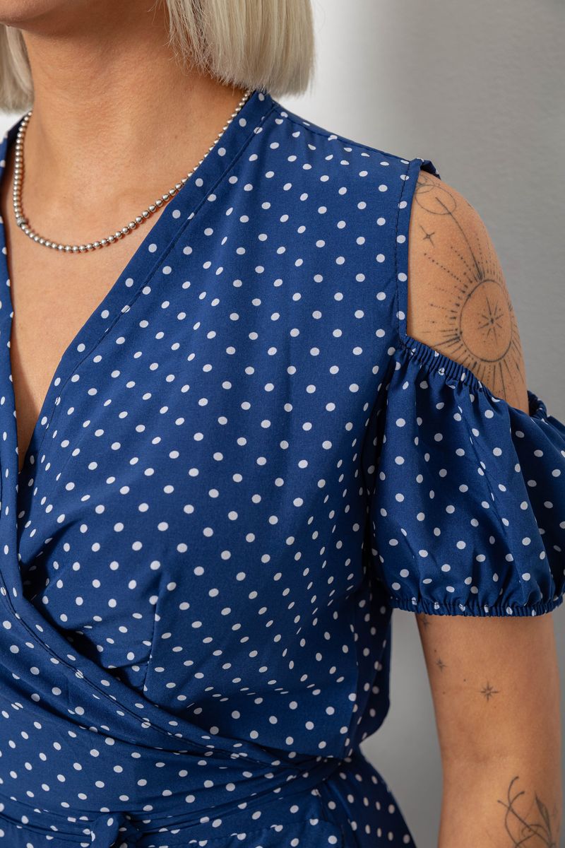 Сукня жіноча на запах у горошок софт, колір пудровий, 257R358-3
