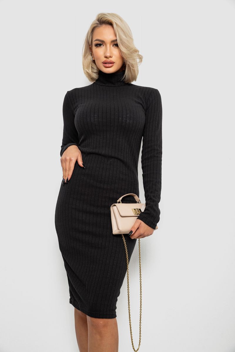 Сукня однотонна в рубчик, колір чорний, 257R701-1