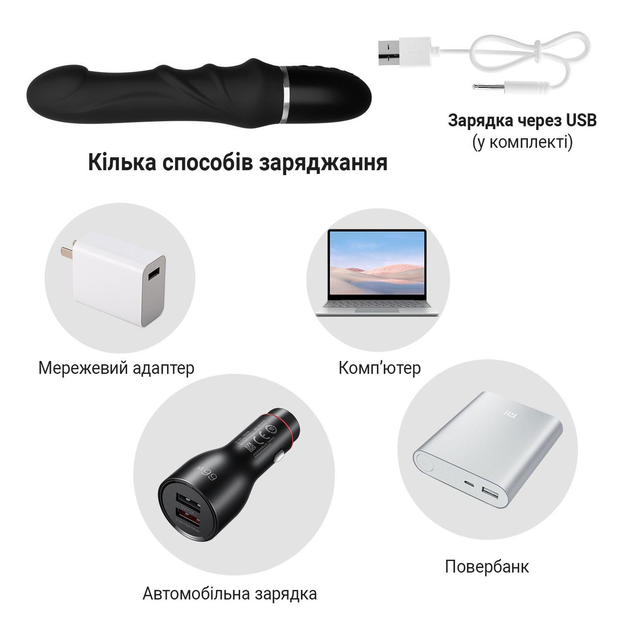 Реалістичний силіконовий вібратор водонепроникний 23.5 см Чорний — це ідеальний вибір для тих, хто шукає інтенсивні та реалістичні відчуття. Він забезпечує неперевершений рівень задоволення завдяки своїм характеристикам та функціональності.Технічні характеристики:Чорний колір — підкреслює елегантність та вишуканістьВбудоване управління — забезпечує зручність та простоту використання10 режимів вібрації — надають можливість вибору оптимальної інтенсивності для кожної жінкиСилікон — гарантує безпеку, гіпоалергенність та приємні тактильні відчуттяДовжина 23.5 см (робоча довжина 13,5 см) — забезпечує оптимальний розмір для стимуляціїДіаметр 4 см — ідеально підходить для комфортного введенняПризначений для жінок — враховує анатомічні особливості та потреби жіночого тілаРеалістичний тип вібратора — забезпечує максимальне наближення до природних відчуттівЖивлення від акумулятора — дозволяє використовувати вібратор без необхідності постійної заміни батарейокВодонепроникність — розширює можливості використання, зокрема у ванній або душіОсобливості та переваги:Реалістичний дизайн для максимального задоволення:Реалістична форма — забезпечує відчуття максимальної близькості до природних відчуттівСиліконова поверхня — безпечна для тіла та приємна на дотикЧорний колір — додає елегантності та підкреслює вишуканість виробуФункціональність та зручність використання:10 режимів вібрації — дозволяють налаштувати інтенсивність відповідно до індивідуальних потребВбудоване управління — робить використання пристрою інтуїтивно зрозумілим та зручнимВодонепроникний корпус — дозволяє використовувати вібратор у вологих умовах, розширюючи можливості його застосуванняБезпека та гігієна:Виготовлений з високоякісного силікону — не викликає алергії та безпечний для здоров'яЛегко очищується — забезпечує простий догляд та підтримання гігієниВодонепроникна конструкція — запобігає проникненню вологи всередину пристрою, продовжуючи термін його службиКомплектація: Реалістичний вібратор, USB-кабель для зарядки.Догляд: Після кожного використання ретельно промийте силіконовий вібратор теплою водою з м’яким милом. Для дезінфекції можна використовувати спеціальні засоби для інтимних іграшок. Зберігайте у сухому, захищеному від прямих сонячних променів місці.