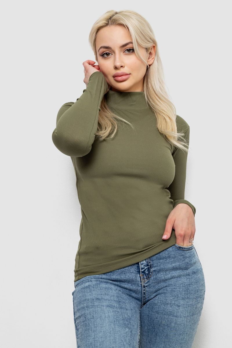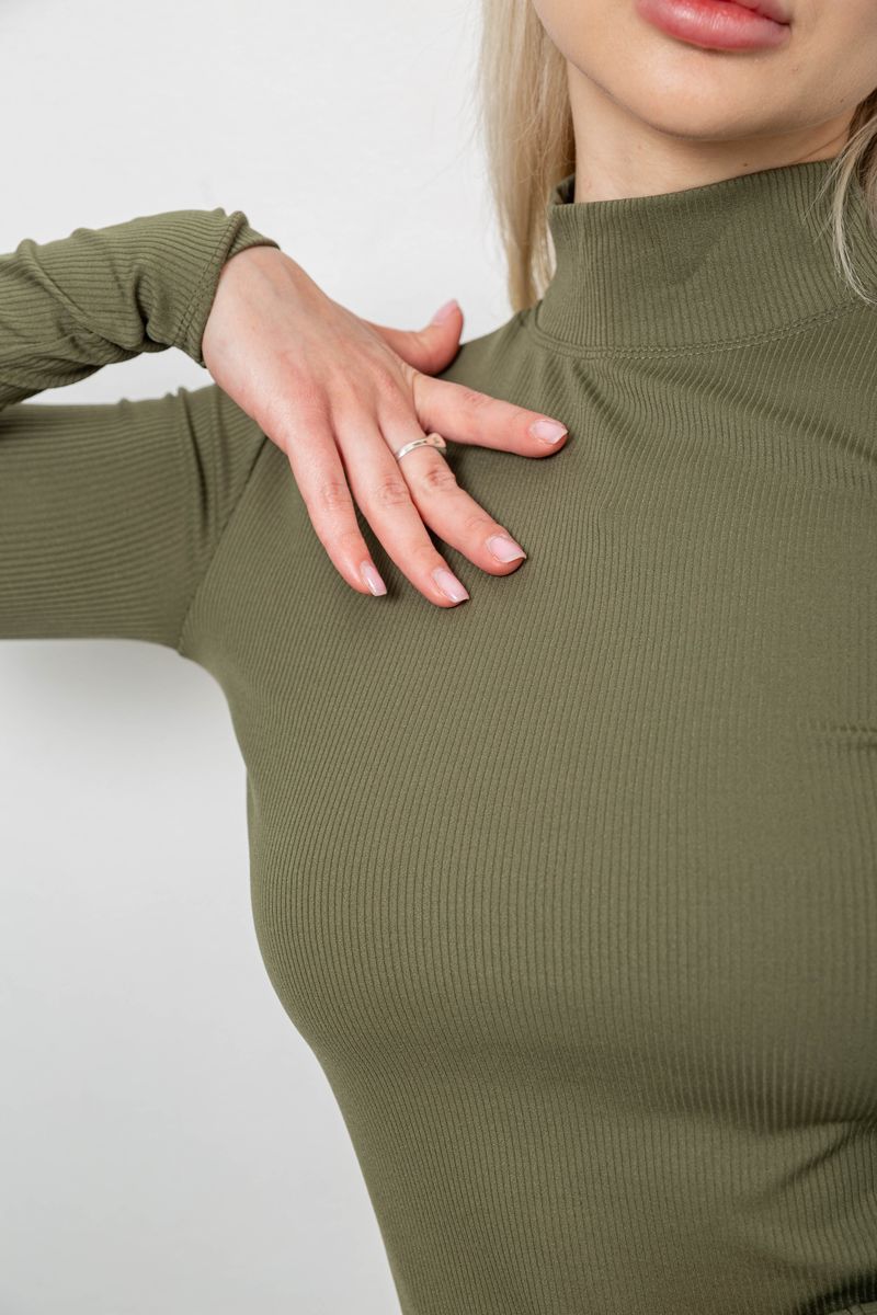 Гольф жіночий однотонний в рубчик, колір хакі, 214R332